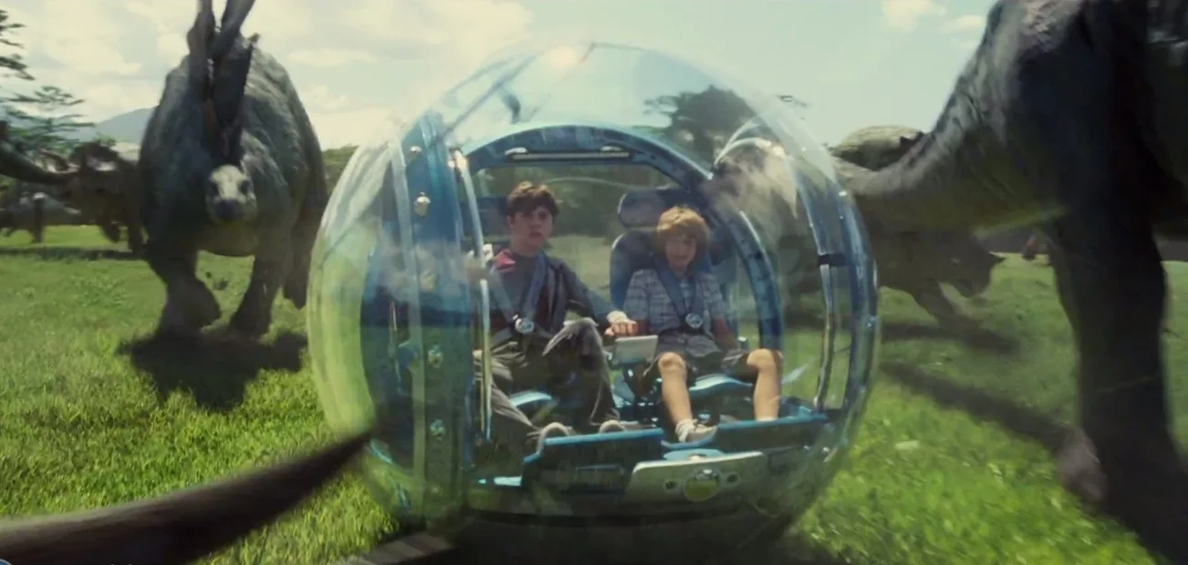 One of my favorite scenes is when the boys get to ride in a Gyrosphere amidst roaming dinosaurs in the park. Mark my words, I’m fairly certain Universal Studios is thinking up some way to turn this into their next theme park ride.